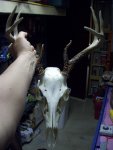 Mike Dignitary Member Supporting Member 16,232 252 Up Nort Feb 19, 2011 #64 It turned out better than I thought. After the cooking, the skull was dark brown/green. The nasal bones and bones above the nasal cavity fell out. This is the buck I found on the last day of muzzy season.