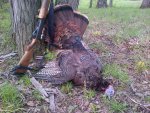 Today I'm in my side yard working on my sprayer getting it ready for Roundup on my food plot. I look up and see a Tom and 2 Jakes going across my back yard. I get my Rem 1100 and dropped the Tom at 40 yds.