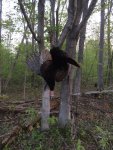 Went out this morning just to listen and see what the birds have been up to......very quite morning with one loner gobbling on the limb. I personally think its getting to hot and there henned up pretty good now.
