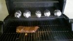 I slow baked some western style pork ribs in the oven while my camo was outside smoking. Once the camo was bagged up, I threw some taters and the ribs on. They look kind of dark in the pics, but they were super tender and fell off the bone!